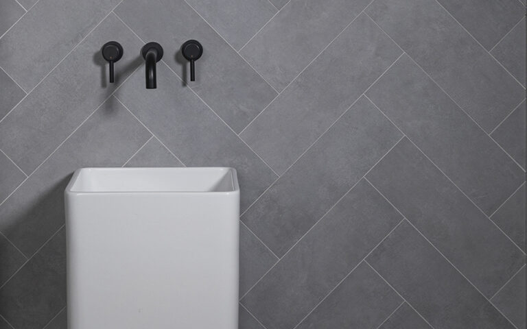 Voor de texturen van de tegels lieten we ons inspireren door beton en zand. In combinatie met de koele kleuren geeft het jouw ruimte net die rebelse look. Bovendien gaat het grijs goed samen met een witte tegel, voor een fris accent.Ontwerper Lian van Wanrooij over Noble